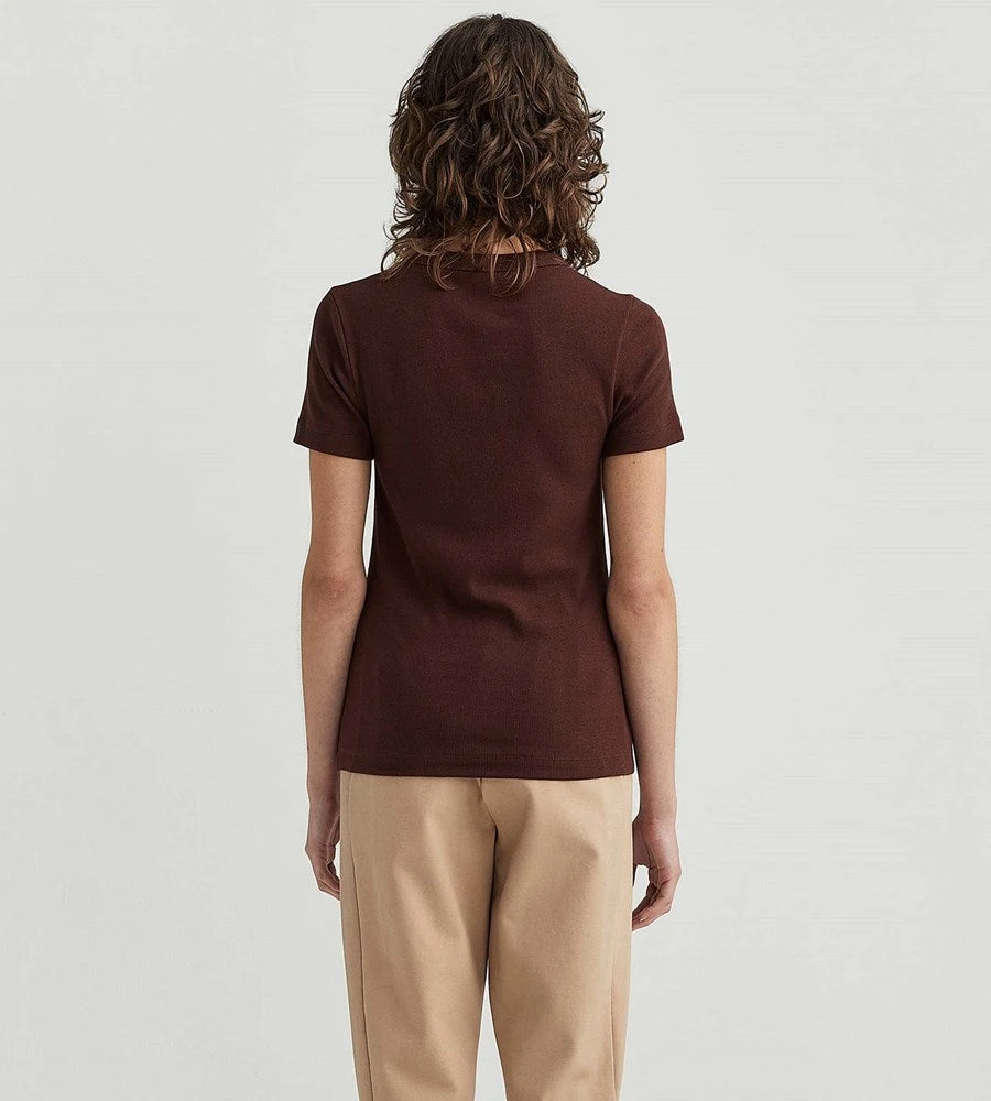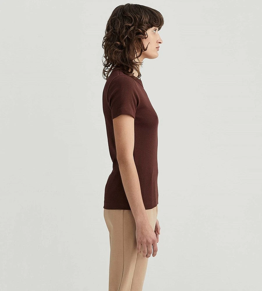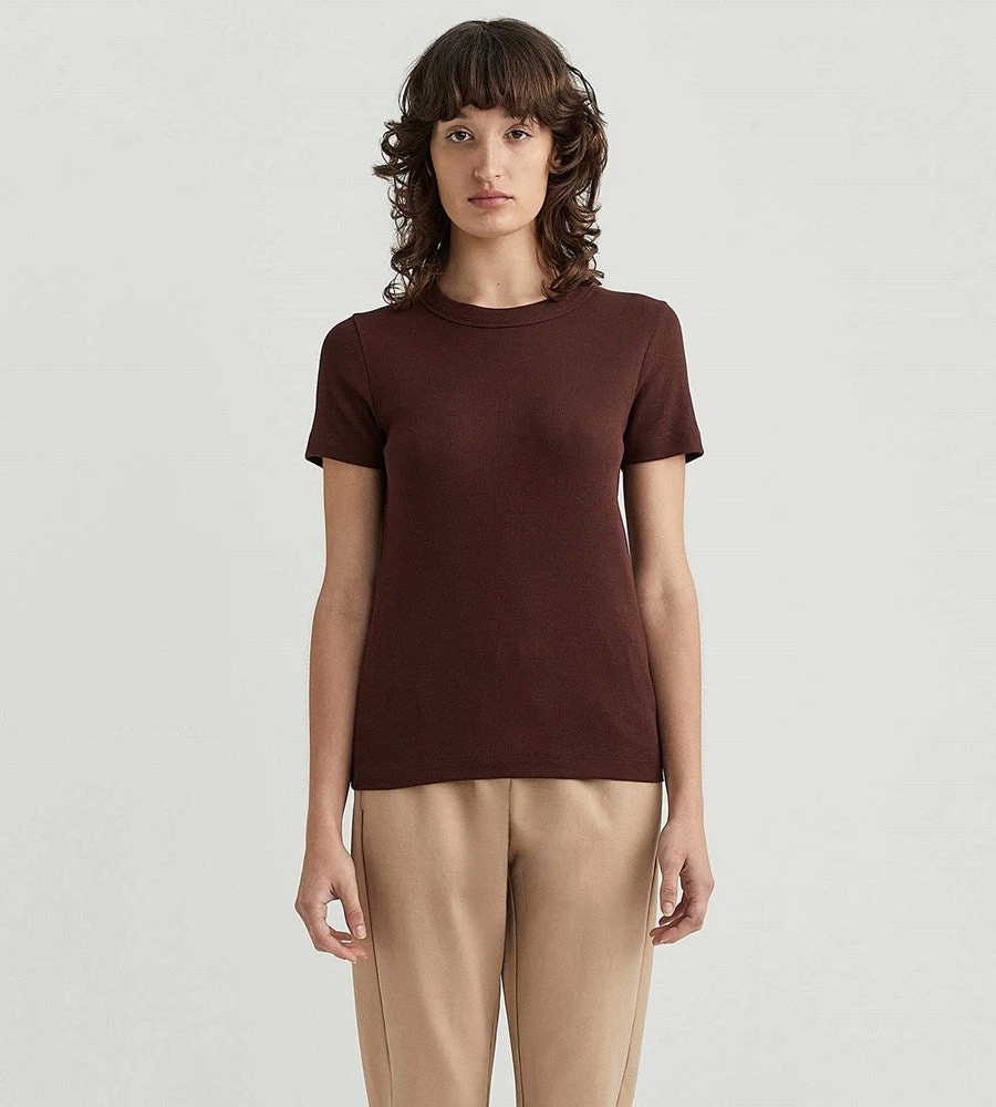 A new tee shape from Jac + Jack that is sure to become a wardrobe essential. This ribbed cap sleeve tee is a true wear-with-anything style, it’s cut from ribbed stretch jersey for a close fit. Juxtapose the aesthetic by styling it with relaxed slouchy pieces such as full pants or soft skirts. This tee is made from 96% Cotton and 4% Lycra. This item is machine washable.