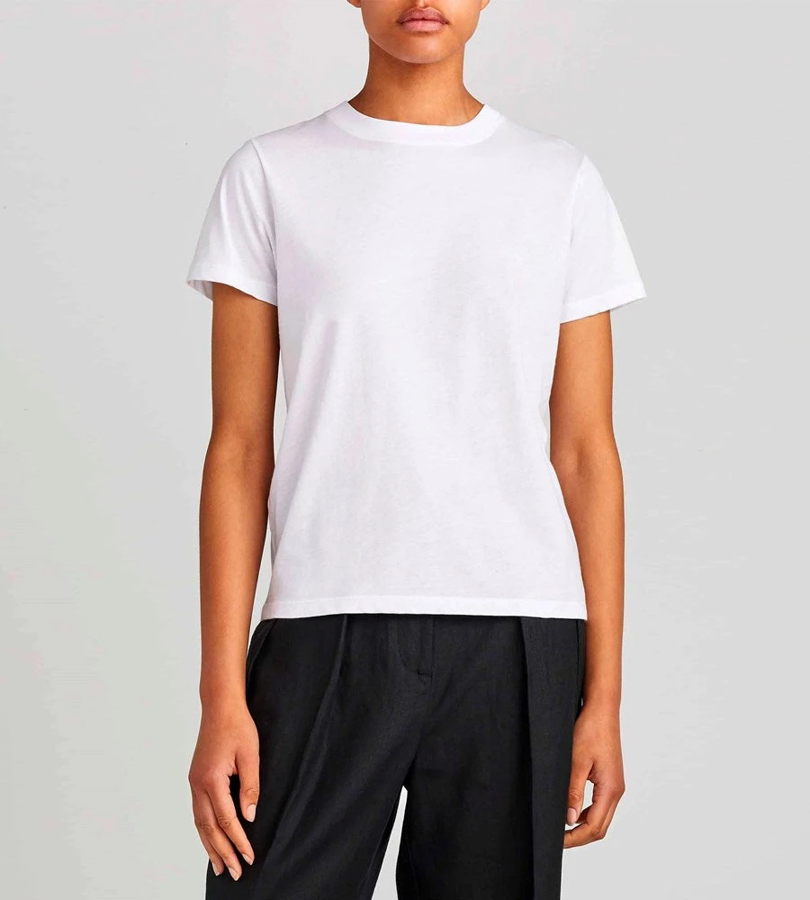 Made in the USA from 100% organic cotton jersey. Jac + jack have made their best selling cotton t-shirt sustainable – the cotton is grown with no synthetic pesticides and our colours are environmentally compliant. On top of that – it’s still the ideal t-shirt that is the perfect piece to build looks around. It has a relaxed fit that feels effortlessly cool and is free from extraneous detailing to ensure versatility. Wear with everything from cropped wide leg pants, to more tailored styles or your favourite off-duty pieces.