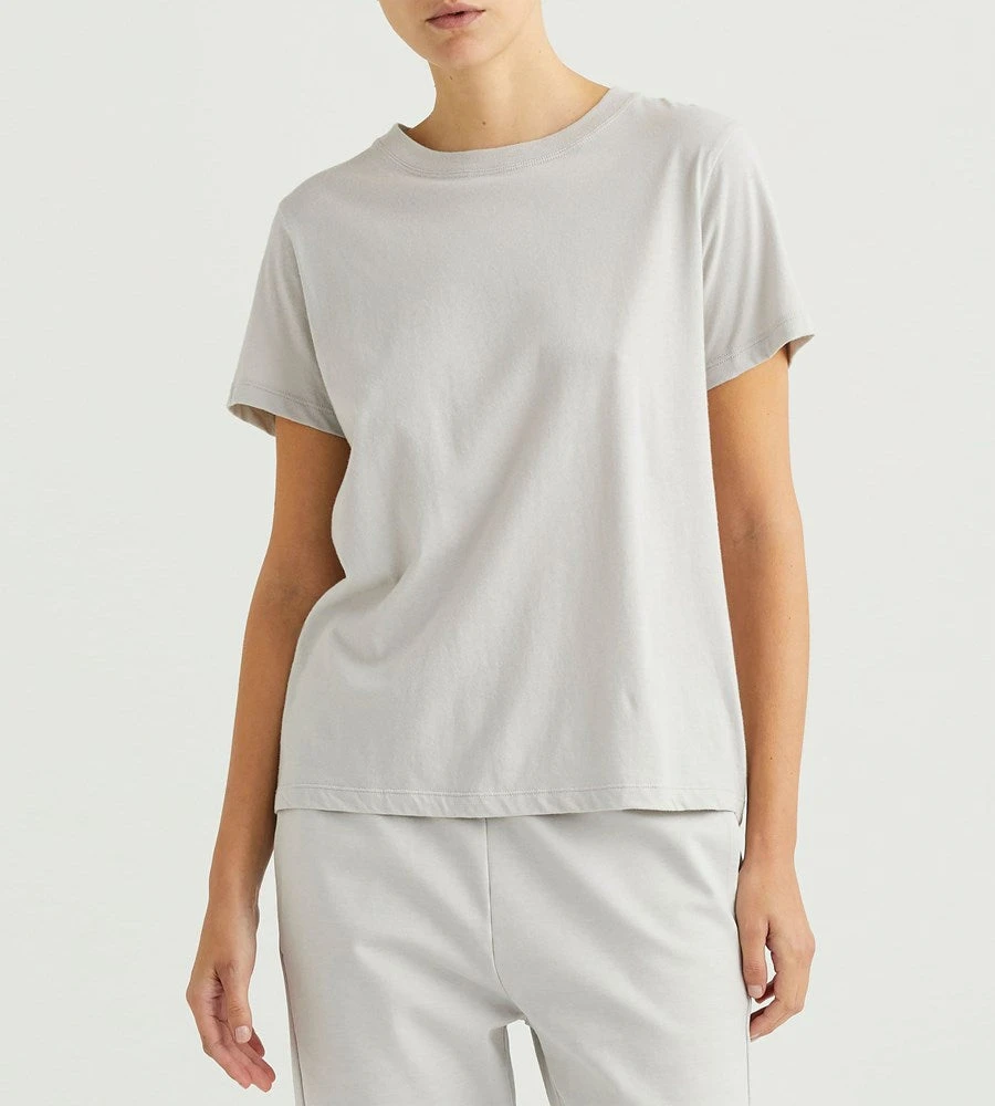 Made in USA from 100% organic cotton jersey. Jac + Jack have made their best selling cotton t-shirt sustainable – the cotton is grown with no synthetic pesticides and our colours are environmentally compliant. On top of that – it’s still the ideal t-shirt that is the perfect piece to build looks around. It has a relaxed fit that feels effortlessly cool and is free from extraneous detailing to ensure versatility. Wear with everything from cropped wide leg pants, to more tailored styles or your favourite off-duty pieces.