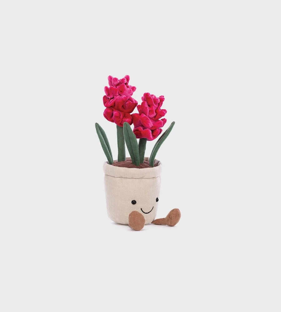 Amuseable Hyacinth is reaching high for the sky! From a cuddly linen pot, up shoots a great big clutch of scrunchy pink flowers. Cordy boots, softly folded leaves and a proud smile complete the look to make Hyacinth a dashing little perennial! The loveable Amuseable Hyacinth is suitable for newborns, making it the perfect gift for little ones that they will love and cherish for years to come.