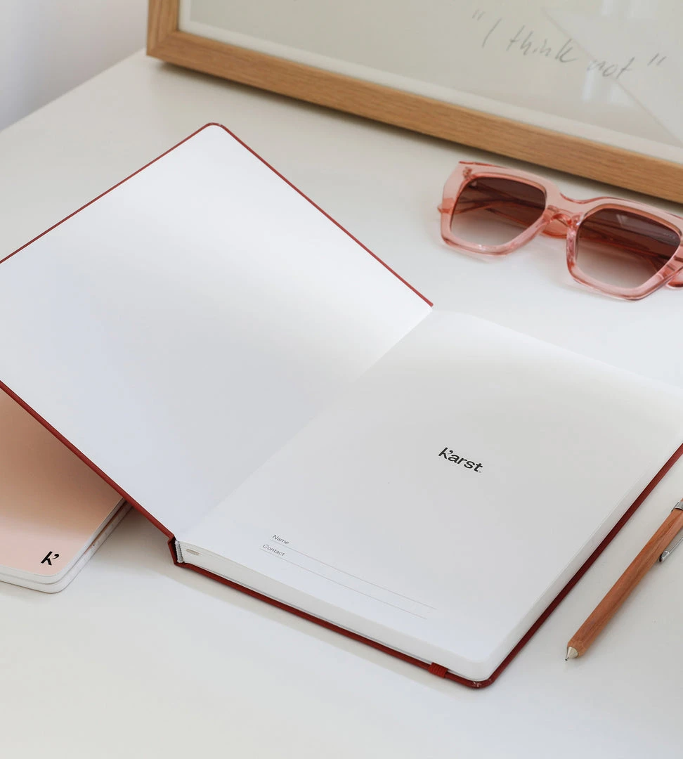 Made for creatives by creatives, this Karst notebook is more than a collection of pages to fill. Its waterproof cover and pages will keep it from absorbing moisture for those rushed early-morning coffee runs. The smooth texture of the pages and flat-lay binding provide ample comfort and writing space for your notes and ideas. Store your loose notes in the back pocket. This is the perfect low-tech companion to your high-tech devices.