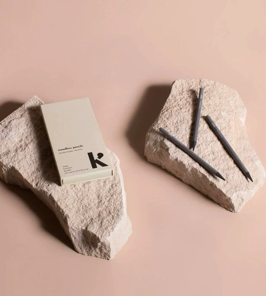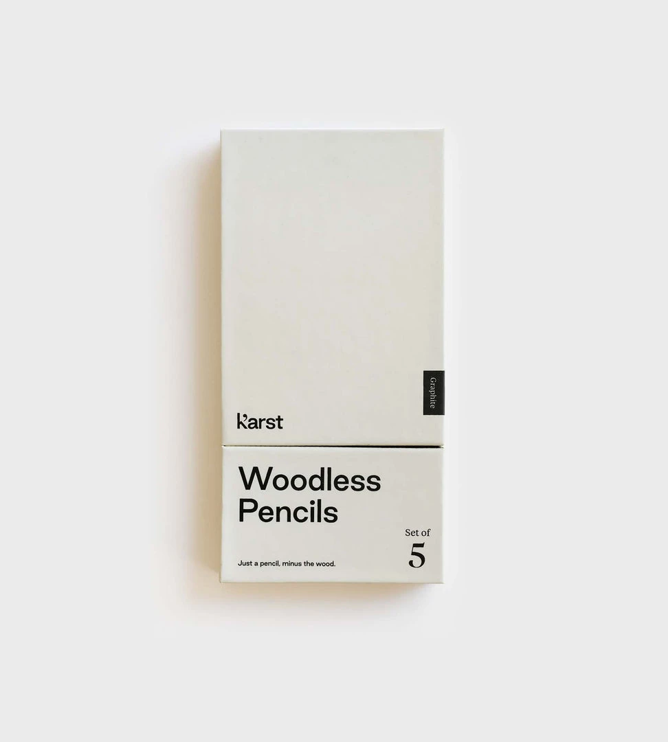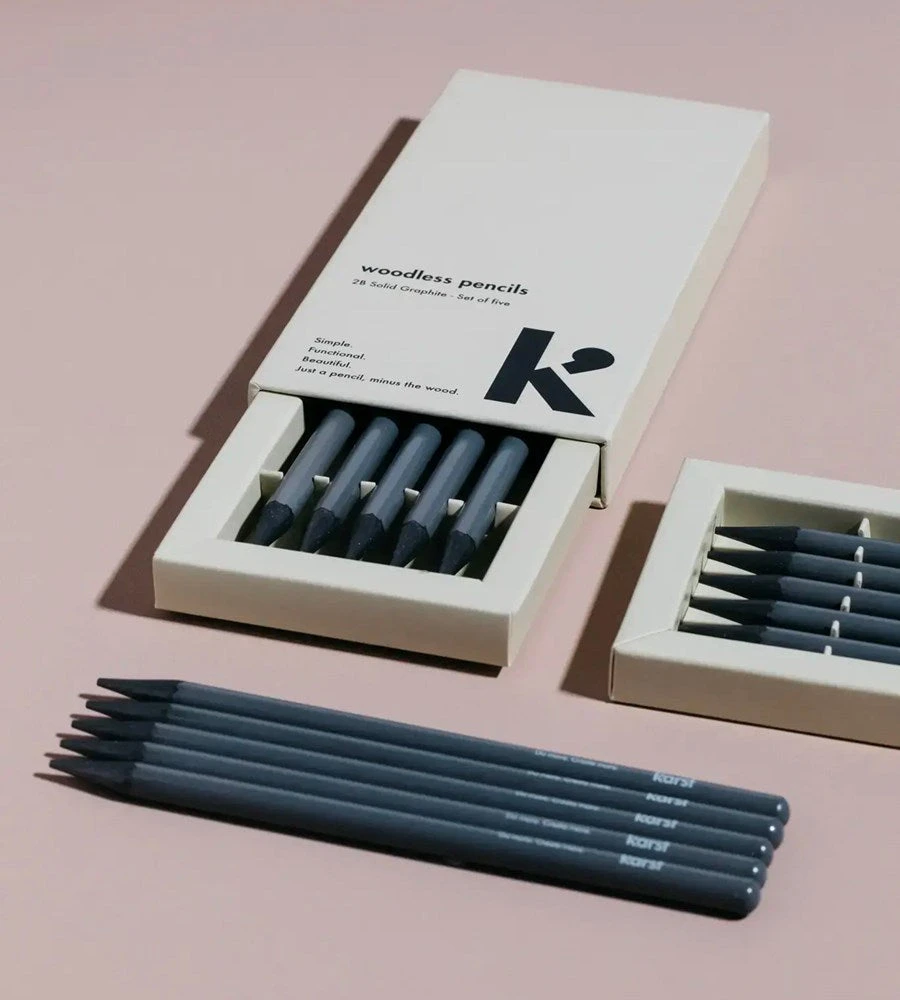 The Woodless Pencils come as a set of 5 solid graphite pencils. Made of 100% pure graphite with 2B hardness, it’s the best lead grade for Karst paper products. Matte coating to keep your fingers clean.