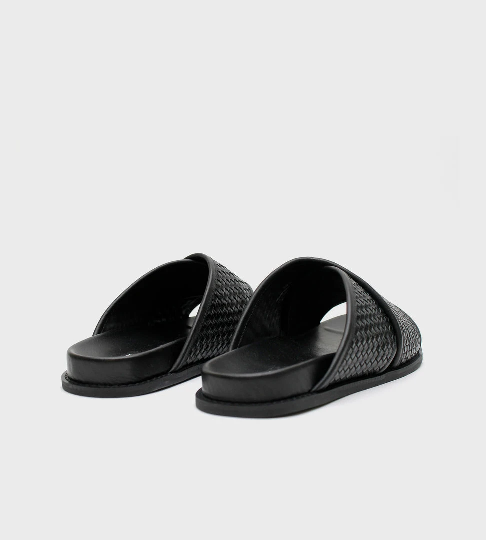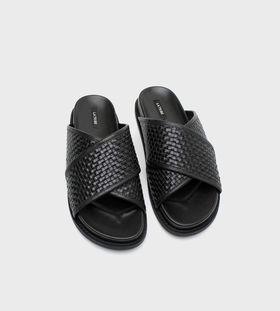 Inspired by the very first pair of La Tribe slides, the Woven Crossover Slide features a woven strap that sits comfortably over the foot. Designed to slip on and off easily and for everyday wear.