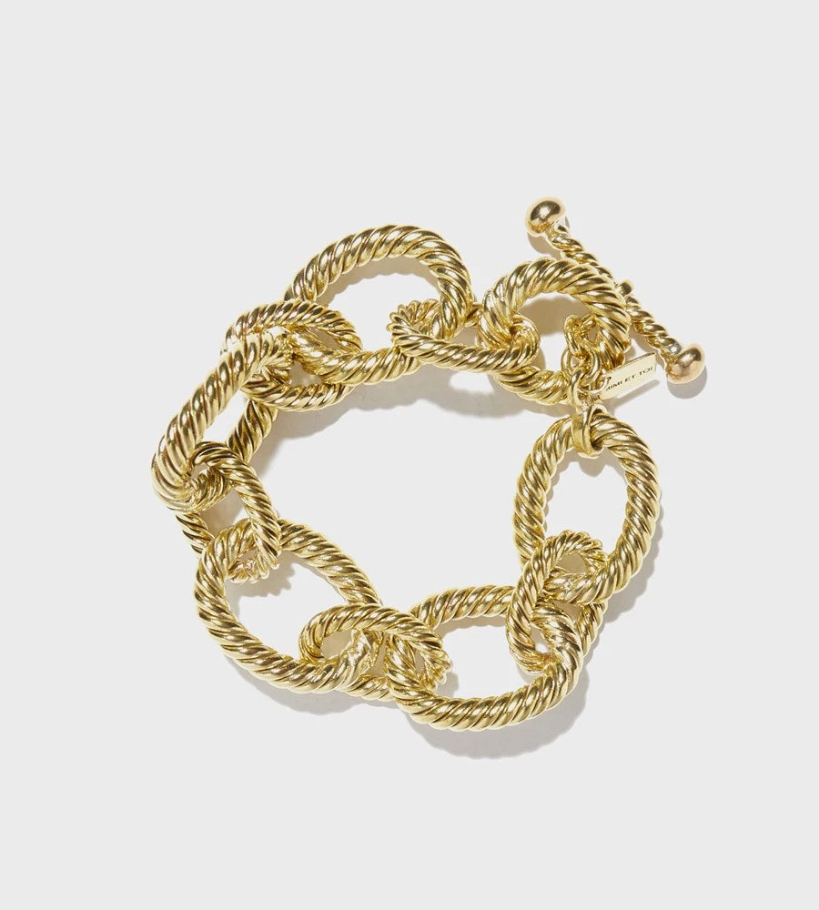 The Mimi Et Toi Coco bracelet is a bold brass chain bracelet. Mimi Et Toi jewellery is made to go with everything so that it can be worn every day. Coco makes every outfit elegant. This bracelet styles extremely well with a crisp white blouse.