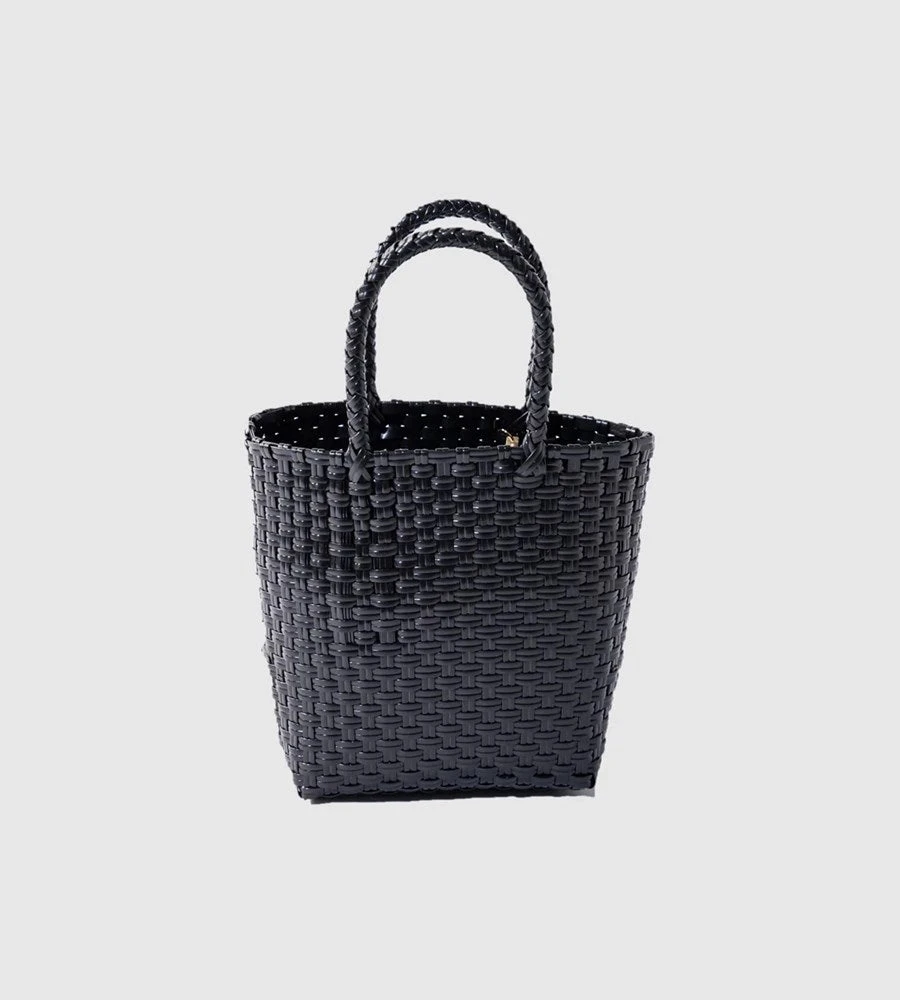 Mimmi Terra’s recycled totes are made entirely from discarded plastics such as bottle caps and lids. The result is a durable low maintenance material which is hand-woven into timeless designs.