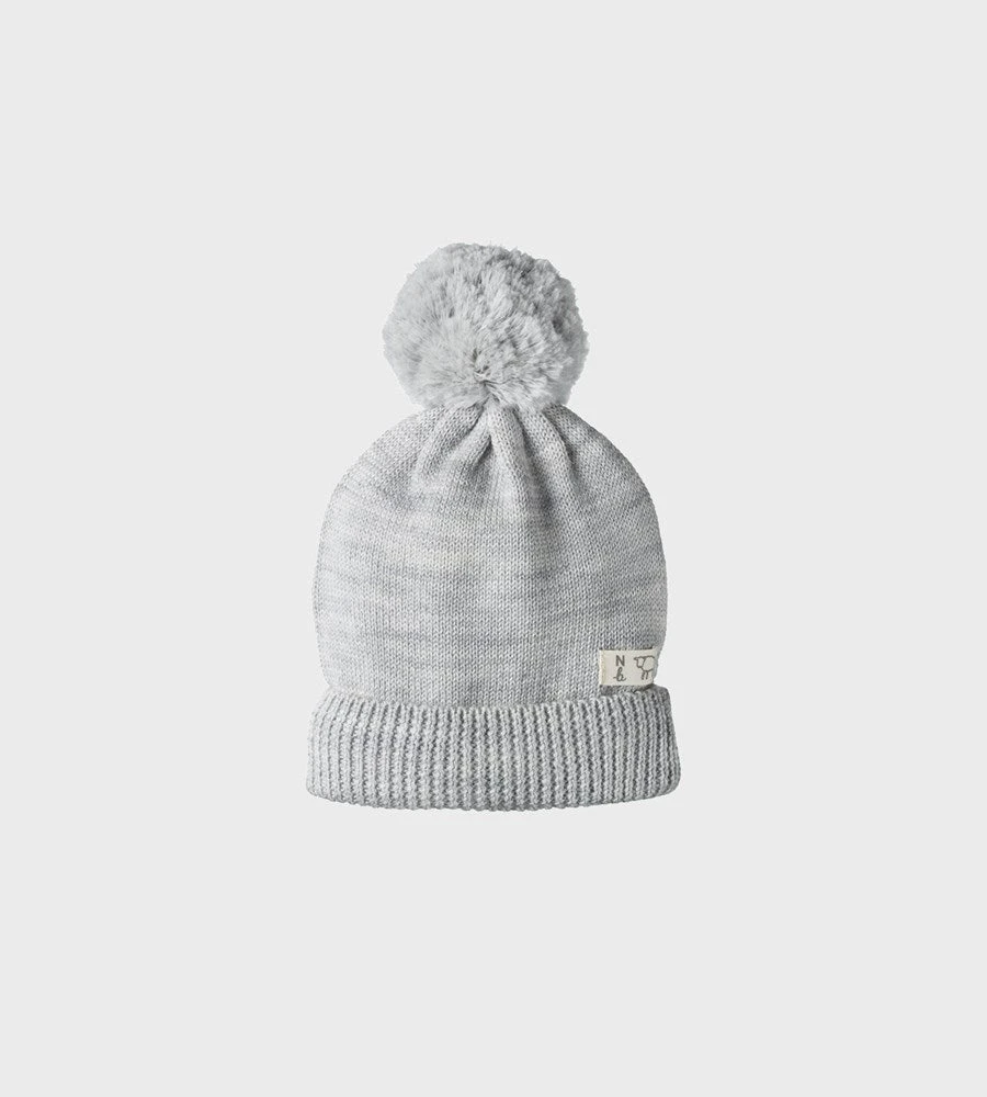Keep your little one’s head warm with this cute beanie! Featuring a chunky folded rib cuff for a snug fit around baby’s face and ears, and a fun pom pom on top. Knitted in organic merino wool for extra warmth.
