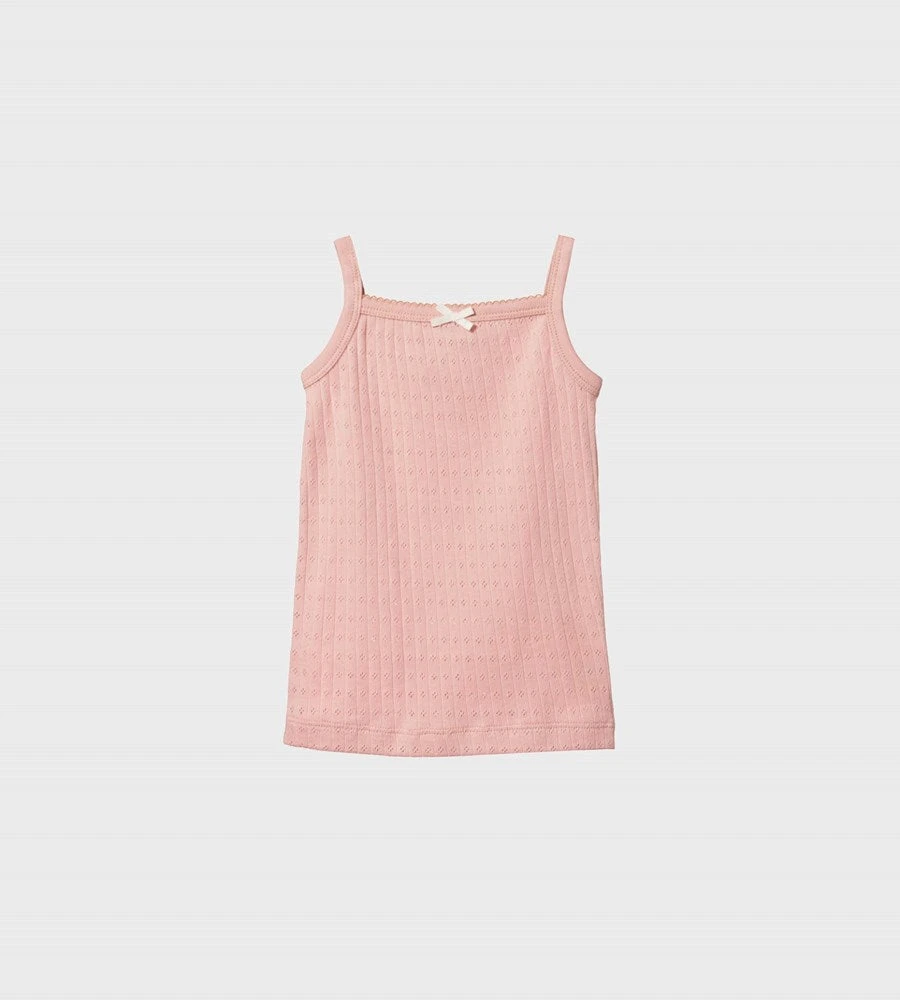 Beautifully sweet camisole made from super soft and stretchy pointelle fabric that has a nostalgic quality. Features delicate picot stitching along the front with a sweet little bow detail. Made of 100% organic cotton pointelle and has been pre-washed in a GOTS certified factory to minimise shrinkage.