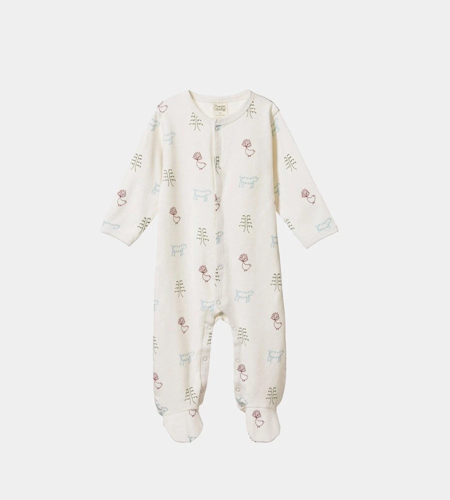All in one suits are perfect in baby’s first few months, for both day and nightwear. The stretch & grow keeps baby’s feet covered and features convenient snap domes all the way down the front and around the legs to facilitate easy nappy changes. Made from soft and breathable organic cotton.