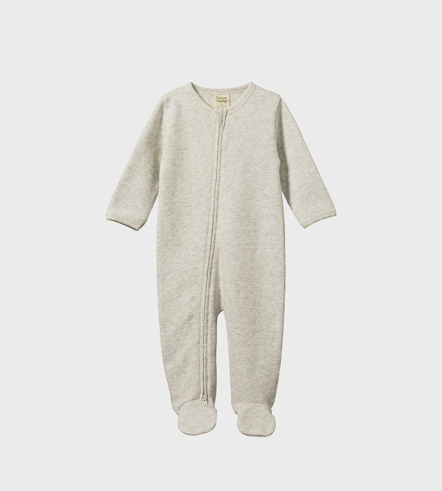 Nature Baby’s Dreamlands suit features a full length double ended zip for easy dressing and night time changes, with enclosed feet to keep little one cosy overnight. Made with Nature Baby’s certified 100% organic cotton waffle, a textured knit fabric that supports heat retention to keep little one snuggly and warm, whilst remaining breathable. To minimise shrinkage, this fabric has been pre-washed in a GOTS certified factory.