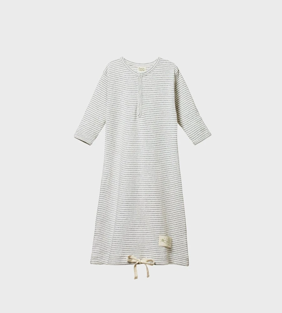 Nature Baby’s classic organic cotton gown is a much loved newborn essential. Designed to keep little feet tucked in and warm with a soft drawstring opening at the bottom allowing easy nappy changing through the night. Fold down mittens at the cuff to keep little hands warm and prevent scratching.