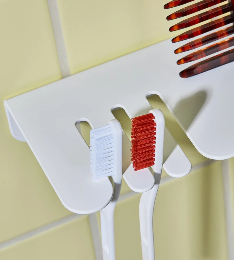 Made in Whanganui, New Zealand, these Toothbrush Shelves fit every manual and electric toothbrush. The 8mm slots accommodate two toothbrushes comfortably and three if you don’t mind them getting a little close. They allow the brushes to hang up to dry, meaning no more slimy bathroom cups or mouldy handles. Fixed to the wall with two screws, they can be attached to most surfaces easily.