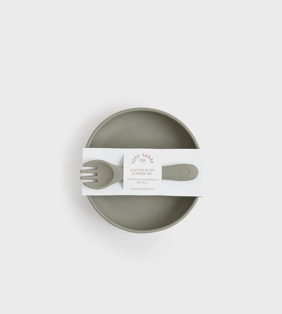 The perfect first plate for your little one. This Plate and Spork Set from Tiny Table Co. features a plate with a suction base that has just the right amount of depth to help contain the food in those early stages. This beautiful, simplistic design also stacks well for easy storage.