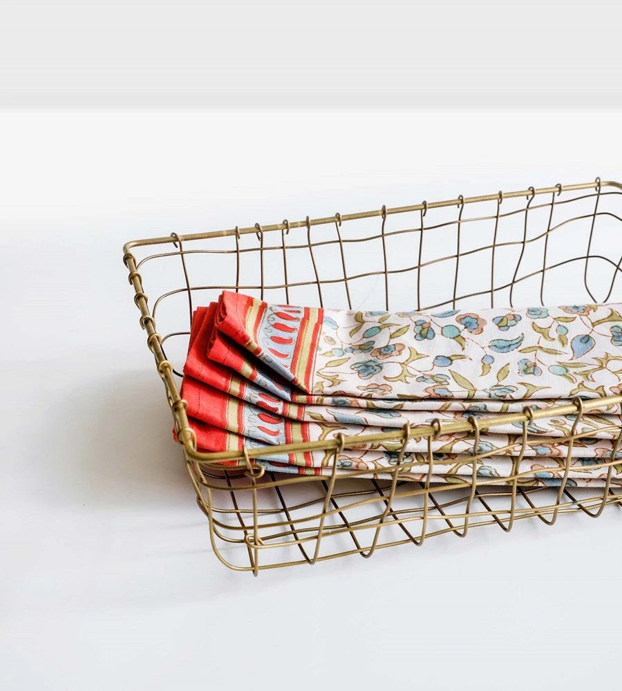 Fog Linen’s Brass Basket is a useful storage basket that has been hand-woven in sturdy brass wire. This basket features cut-out handles for an easy grip. This item is hand-made, so each basket will exhibit its own character. Some variations will occur in the texture of this hand-made item.