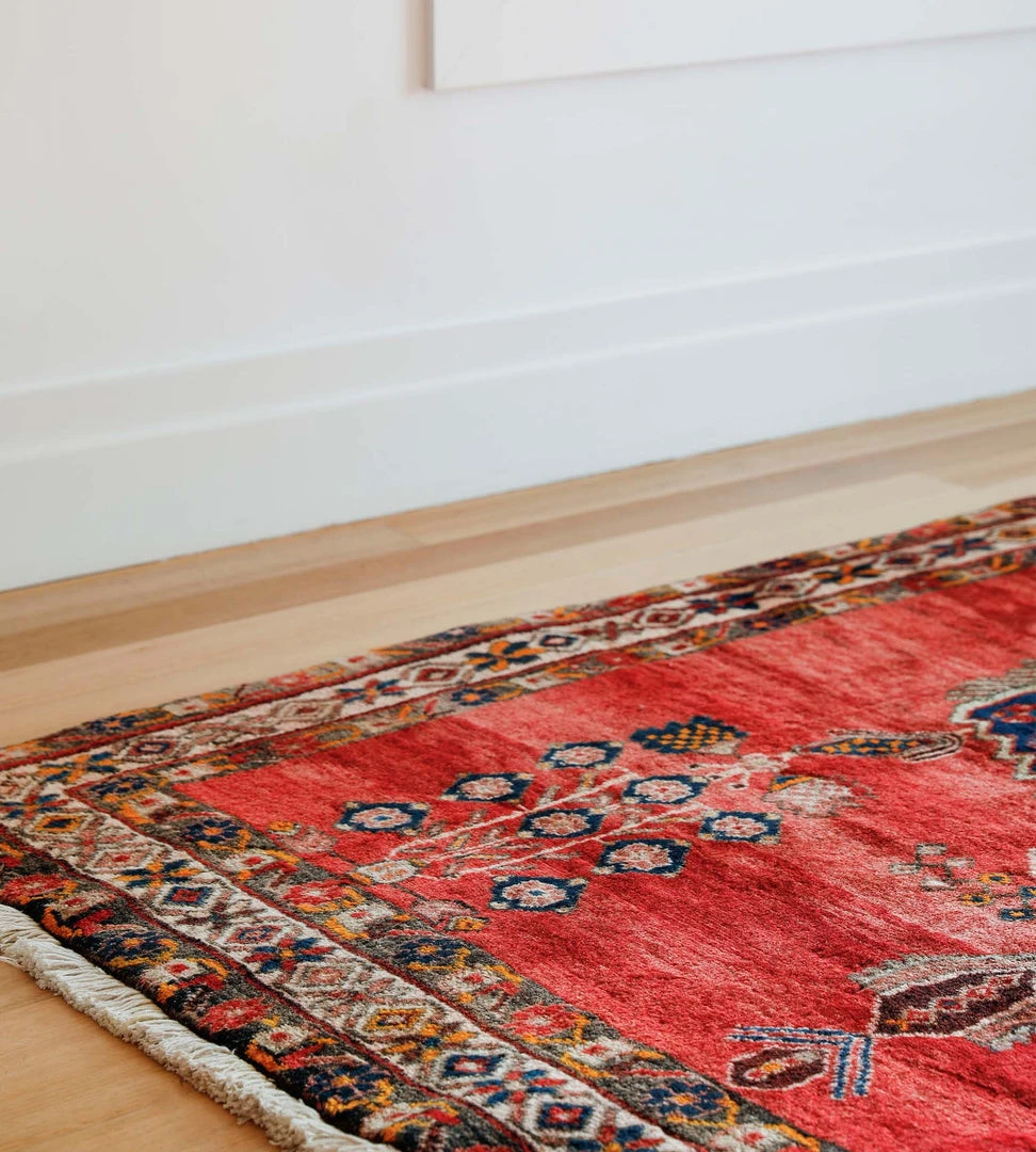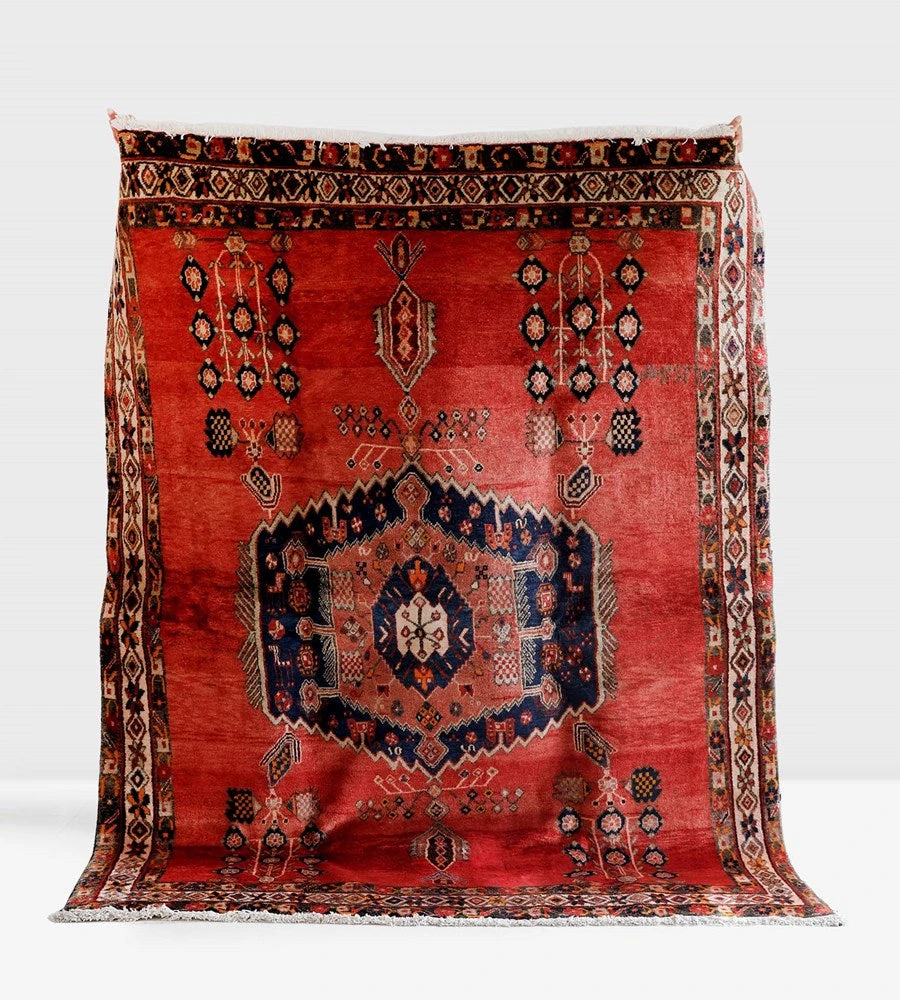 This beautiful Sirjan Persian Rug was hand knotted in the city of Sirjan, Iran. Sirjan rugs typically have both bold patterns and colours. Designs are often geometric, and sometimes feature flower motifs. It’s not uncommon for Sirjan Persian Rugs to have one or multiple medallions. Colours of which are used are often a red field with other colours being blue, black, ivory and other top colours. Sirjan Persian Rugs are on the thinner side, although there are some which would fall into a medium pile height category. These rugs were produced years ago with love by nomads and are a treasure of the past. These rugs have been professionally washed, cleaned and restored. Due to the vintage/antique nature of these rugs, there may be imperfections and signs of wear which rather enhance the feel and beauty.
