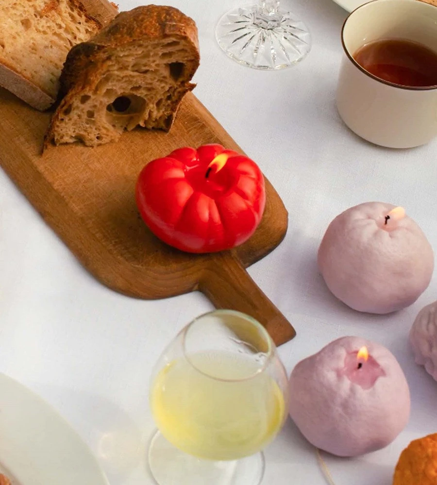 The Small Tomato Candle measures 8.5cm wide x 7.5cm high.