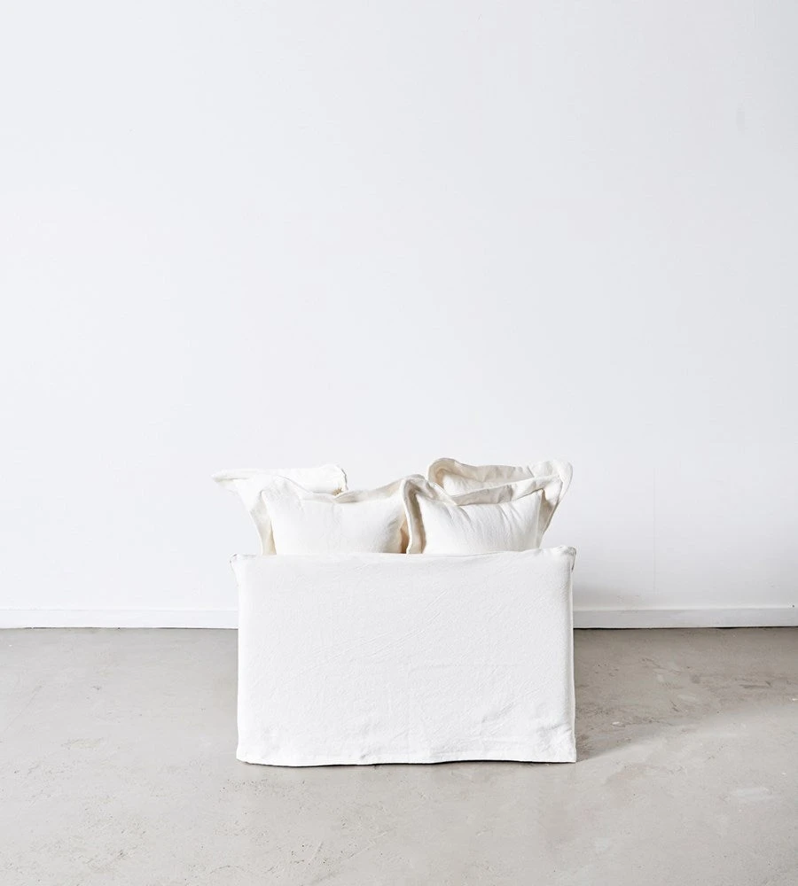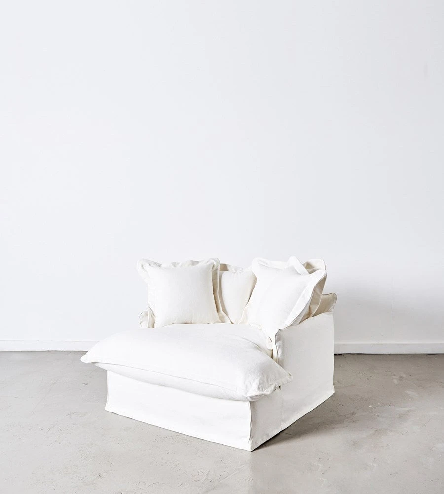The Dawson “Love Seat” Armchair is sumptuous and oversized. Available in two beautiful colours, white as shown or wheat. The fabric is 100% cotton.