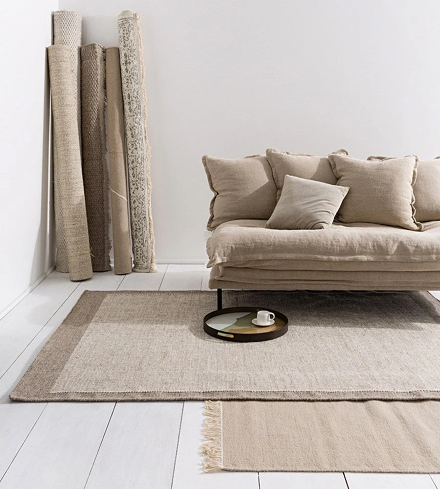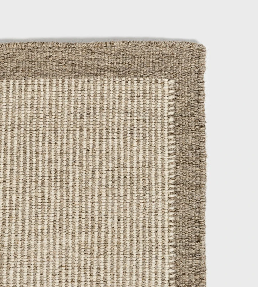 River is a new wool rug with a simple darker contrast border. We recommend using an underlay with your rug to protect the life of your rug and your floor.