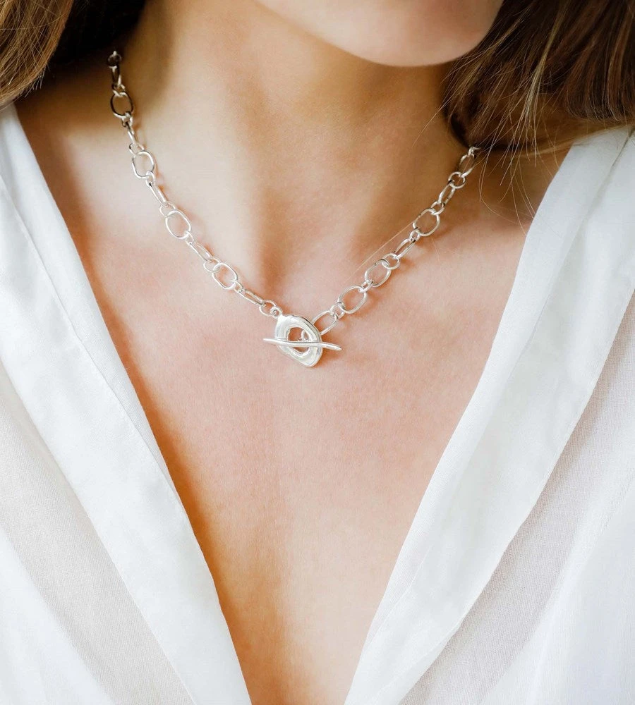 The beautiful Gosia Necklace by Pigment Studio is made up of Irregularly formed links completed with an organically formed, hand carved T-Bar closure.