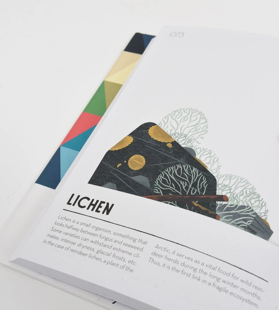 Elegantly designed it offers two-page spreads for 133 different shades. Each full-page of brilliant colour faces a charming explanatory illustration and text of technical, scientific, historic, etymological, or linguistic terms. Two helpful indices present the colours in the order in which they appear in the book and also sorts them thematically in categories such as “Birds,” “Cloth,” “Modes of Transport,” and “Formulas.”