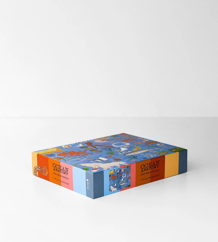 Embark on a journey of discovery, piece by piece. Featuring illustrations from Julia Rothman’s book Ocean Anatomy, this puzzle is a captivating visual tour of life above and below the waves. From the steep cliffs of the seafloor to the patterns and shapes of sea turtle shells to the animals that populate polar ice, this gorgeous study of the watery world will delight and enlighten every ocean lover.