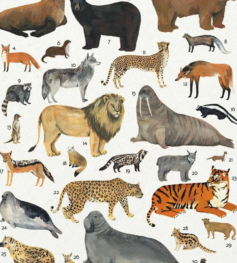 What do an elephant seal and a leopard have in common? Creatures of the Order collects members of the same taxonomic order – the same animal family – together in an informative and beautifully illustrated way. Fascinating text brings Kelsey Oseid’s charming illustrations to life in this enchanting look at the animal kingdom.