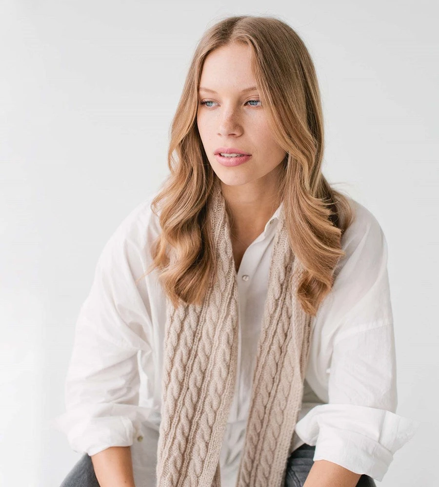 This chunky wool and mohair blend cable knit scarf is so cosy and the perfect everyday accessory for winter.