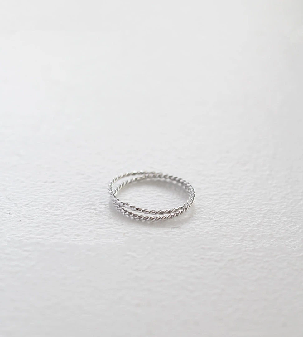 Two 1mm twisted bands linked together, forever. A delicate design that works with or beside other rings – fine, simple and timeless.