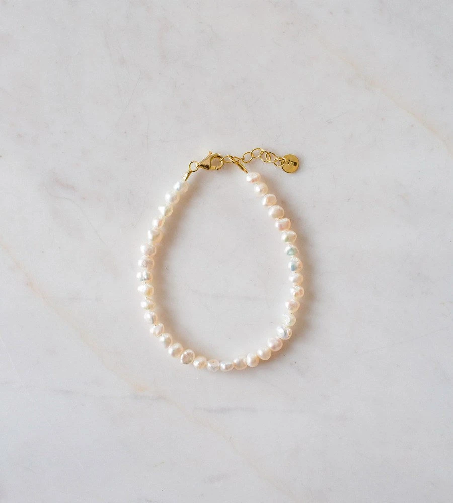 A classic freshwater pearl bracelet for your mini. A cute gift for christening, a birthday or just because. This is one to keep forever as a little momento. Comes in a cotton keepsake bag.Â