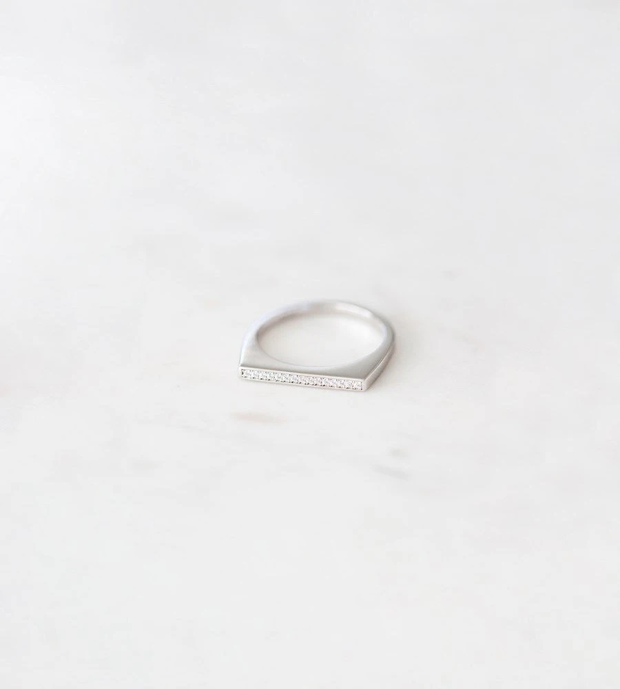 A simple solid ring featuring sweet zirconia detail. Sweet on its own or layered with finer rings. Timeless.