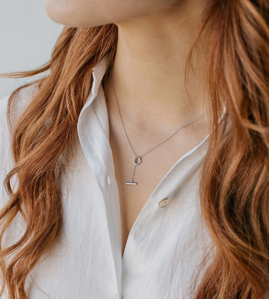 A classic necklace featuring a sweet bar thread clasp. Timeless and elegant.