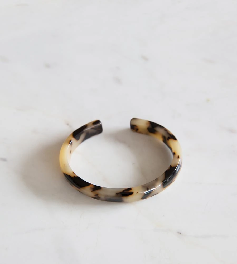 This classic light tortoise shell coloured cuff is perfect for everyday wear. It stacks well with silver and gold & works with black and tan watch straps too. Love it with a white linen shirt or tee for a simple look. Also available in dark tort.