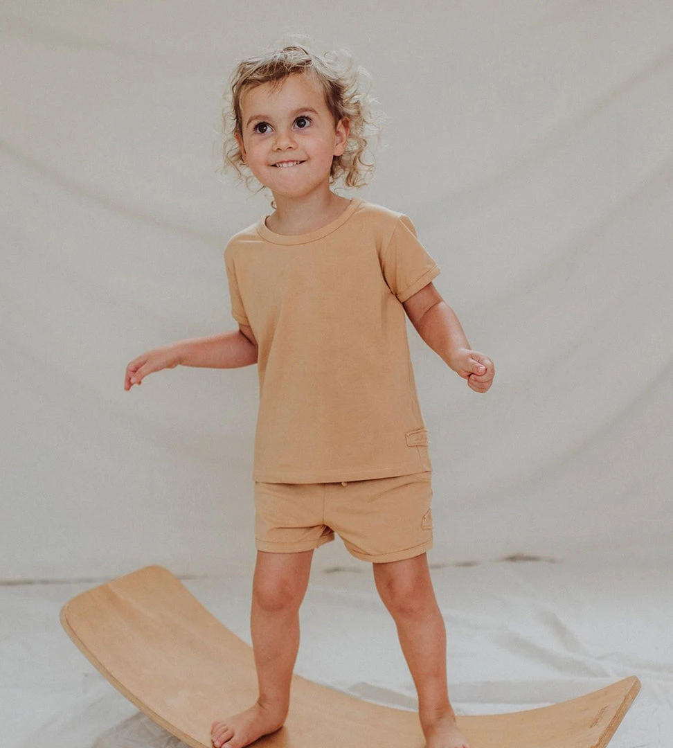 Made with a beautifully soft organic cotton elastane, suitable for delicate baby’s skin. Susukoshi’s basics are well designed for comfort and everyday wear. Features an embroidered logo and snaps on the shoulder up to size 1 to create a wide opening.