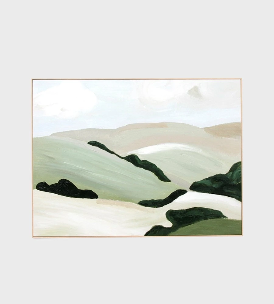 Make a statement in your space with this modern framed canvas inspired by the Australian countryside.