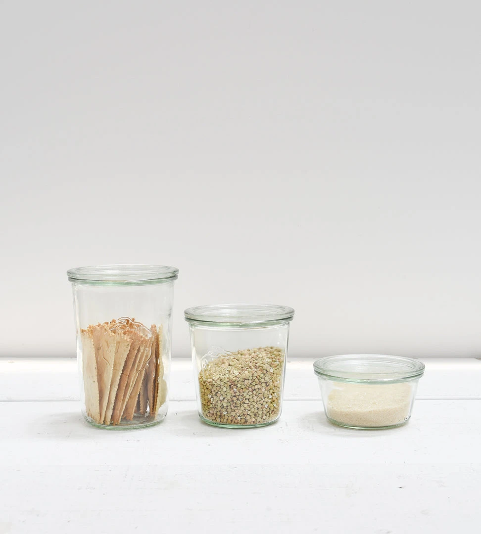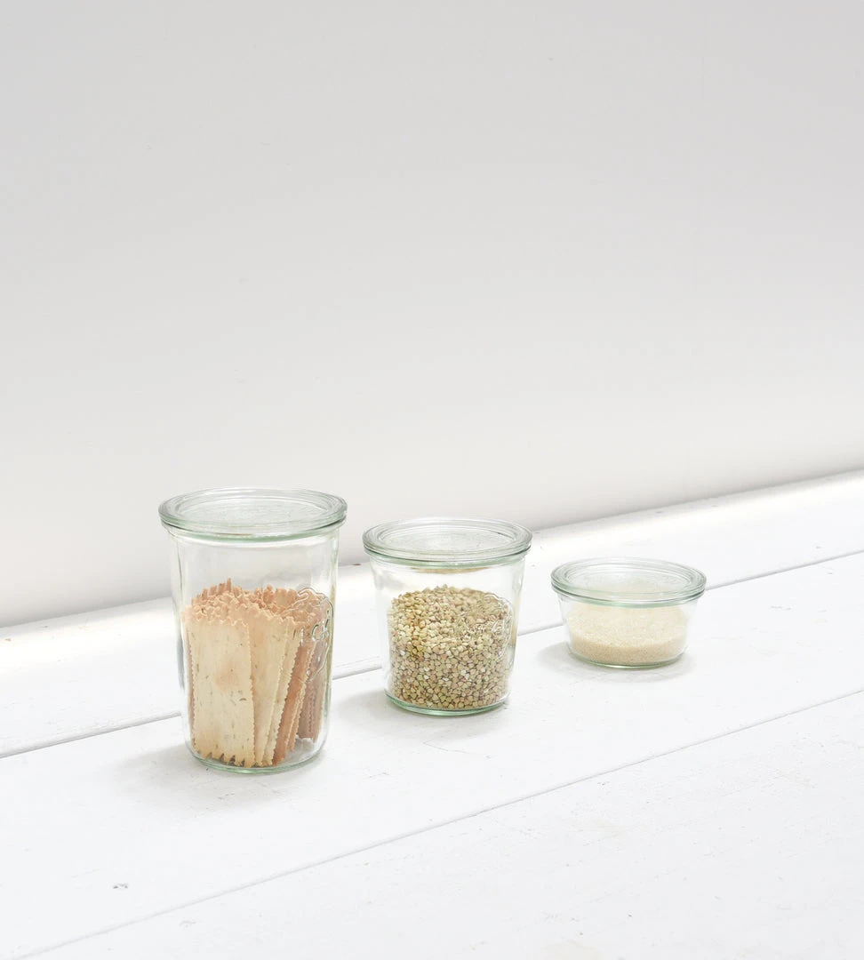 All jars can be paired with the Weck rubber ring and plastic lid to keep your items fresh. Rubber rings, plastic white lids and metal clamps are sold separately.