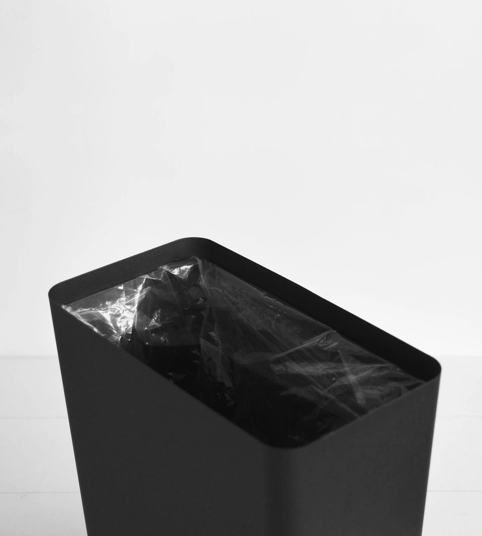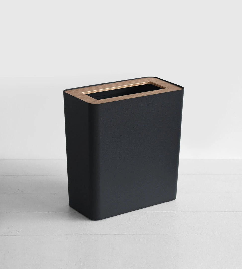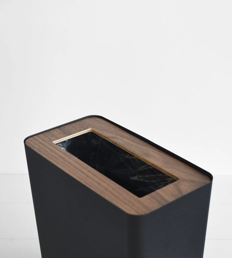 Designed by Yamazaki this stylish trash can made from steel fits into any room in the home or office. It features a wooden insert to cover your bin liner bag and hide the contents. There is also an internal ring to tuck the liner around.