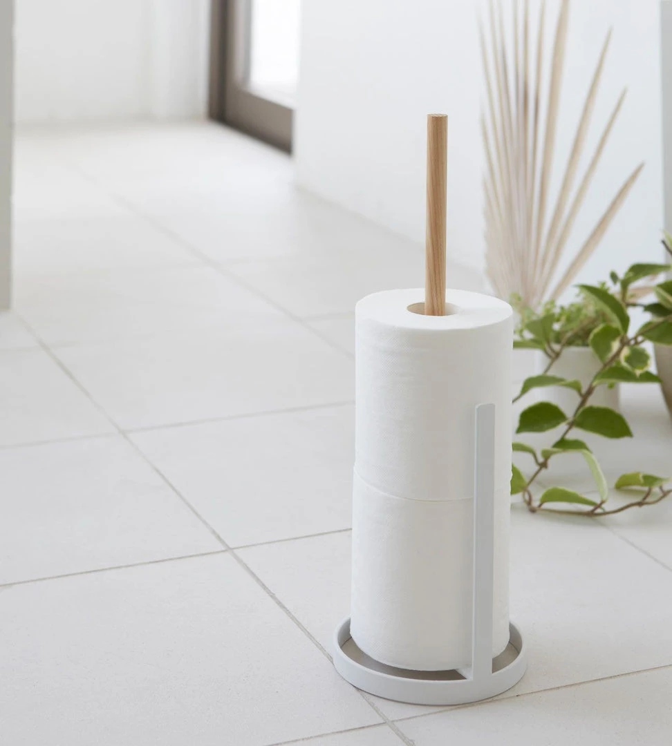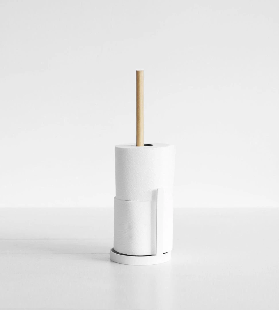 This steel and wood toilet paper stand by Yamazaki is small enough to barely take up any space in a bathroom. It has an elegant design, and holds up to three rolls. It really brightens up the bathroom, and is easy to move and restock.